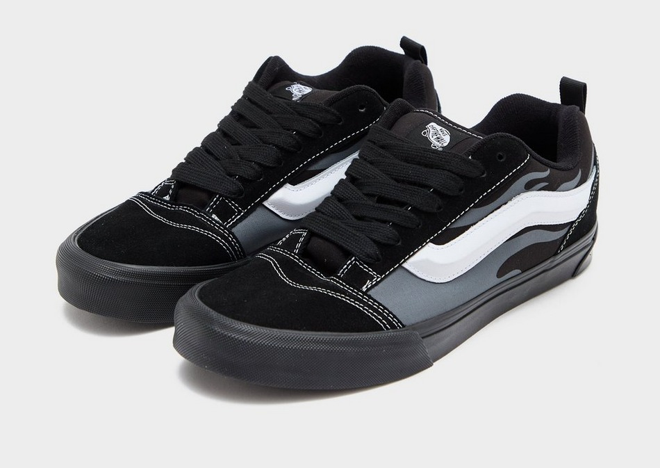Affirmez votre style avec les Vans Knu Skool Flames, des baskets qui allient audace et performance. Leur design noir intense et leur motif flammes apportent une touche unique à chaque pas.
