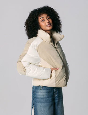 Adoptez l’allure urbaine et fonctionnelle avec cette doudoune courte matelassée aux teintes beige et kaki, idéale pour affronter les journées fraîches avec style. Son design épuré et son col montant offrent une silhouette moderne et protectrice.