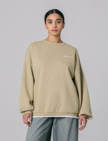 Sweat à message "Dreamer" beige kaki, matière douce, col rond, manches longues, double couture pour une meilleure résistance. Photos retouchées. Référence : 33COUPE.
