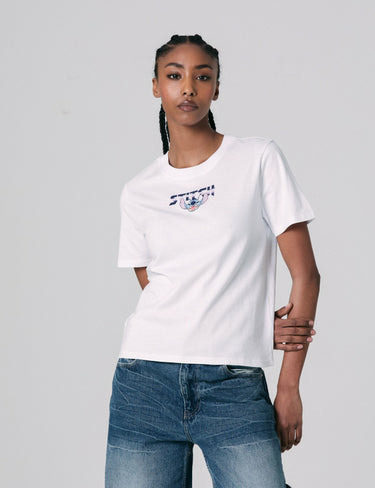 T-shirt à manches courtes, col rond, couleur blanche, modèle Stitch. Matière douce et résistante, idéal pour un usage quotidien. Photos retouchées pour un rendu fidèle. Référence produit : 43TIKATA.