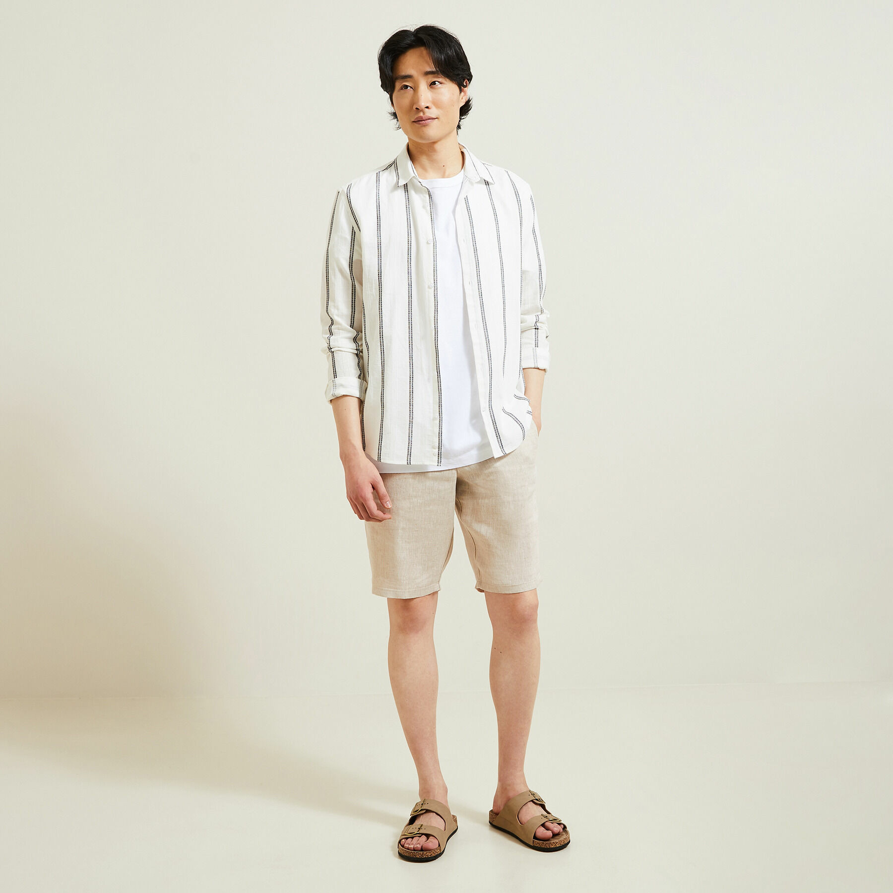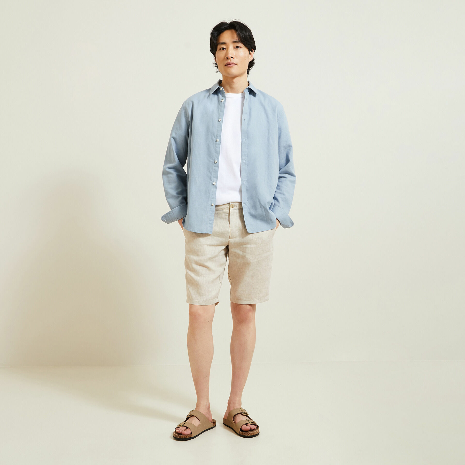 Découvrez le bermuda chino en lin uni, une pièce incontournable pour votre garde-robe estivale. Confectionné en 100% lin, ce bermuda léger est votre allié idéal pour affronter les journées chaudes tout en restant élégant. Sa texture douce et respirante vous garantit un confort inégalé, vous permettant de profiter pleinement de chaque moment.