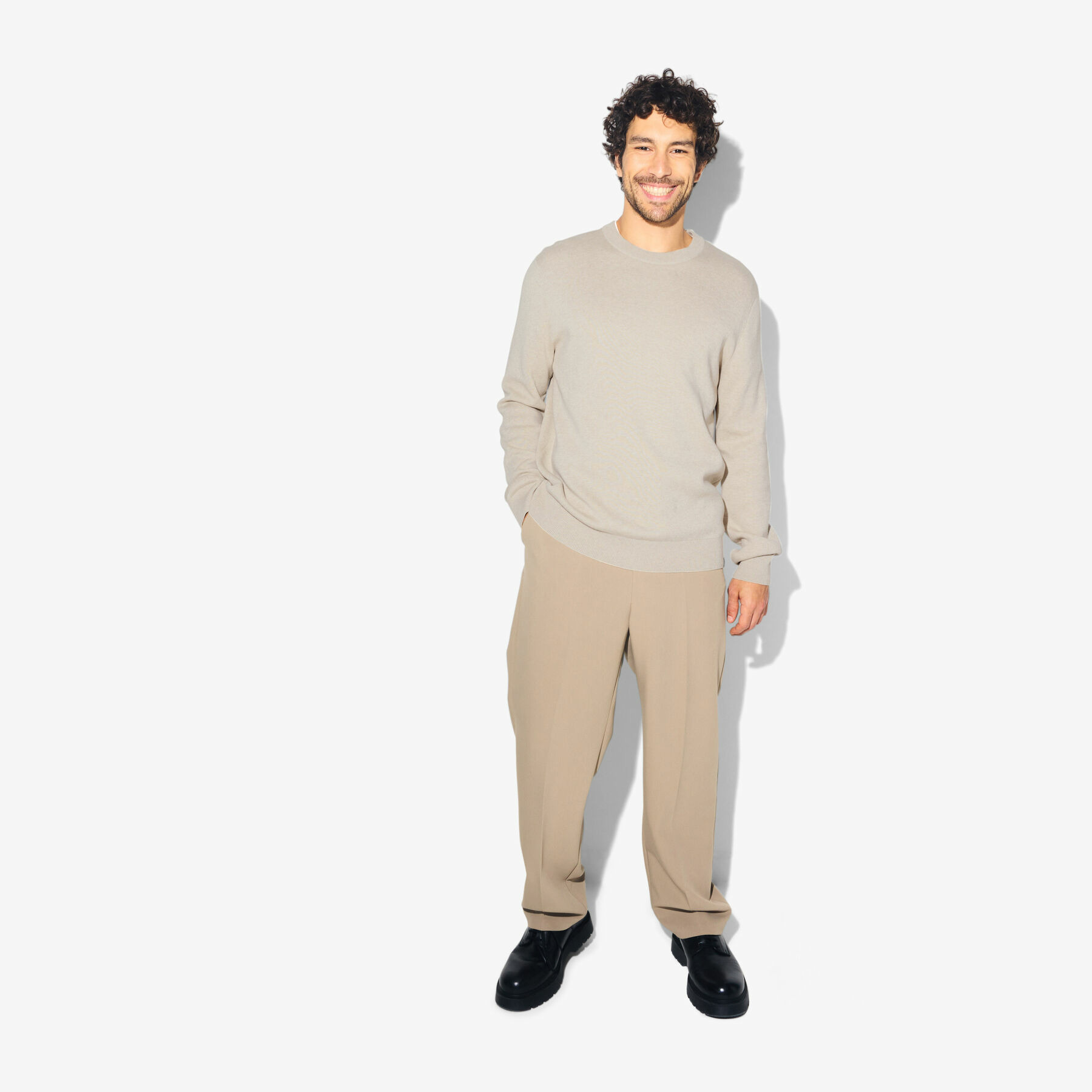 Avec sa coupe ni trop ajustée ni trop large, il flatte toutes les silhouettes et s'adapte parfaitement à vos mouvements. Le col rond en côtes et les finitions en côtes au bas des manches et du corps ajoutent une touche d'élégance décontractée, idéale pour toutes les occasions.