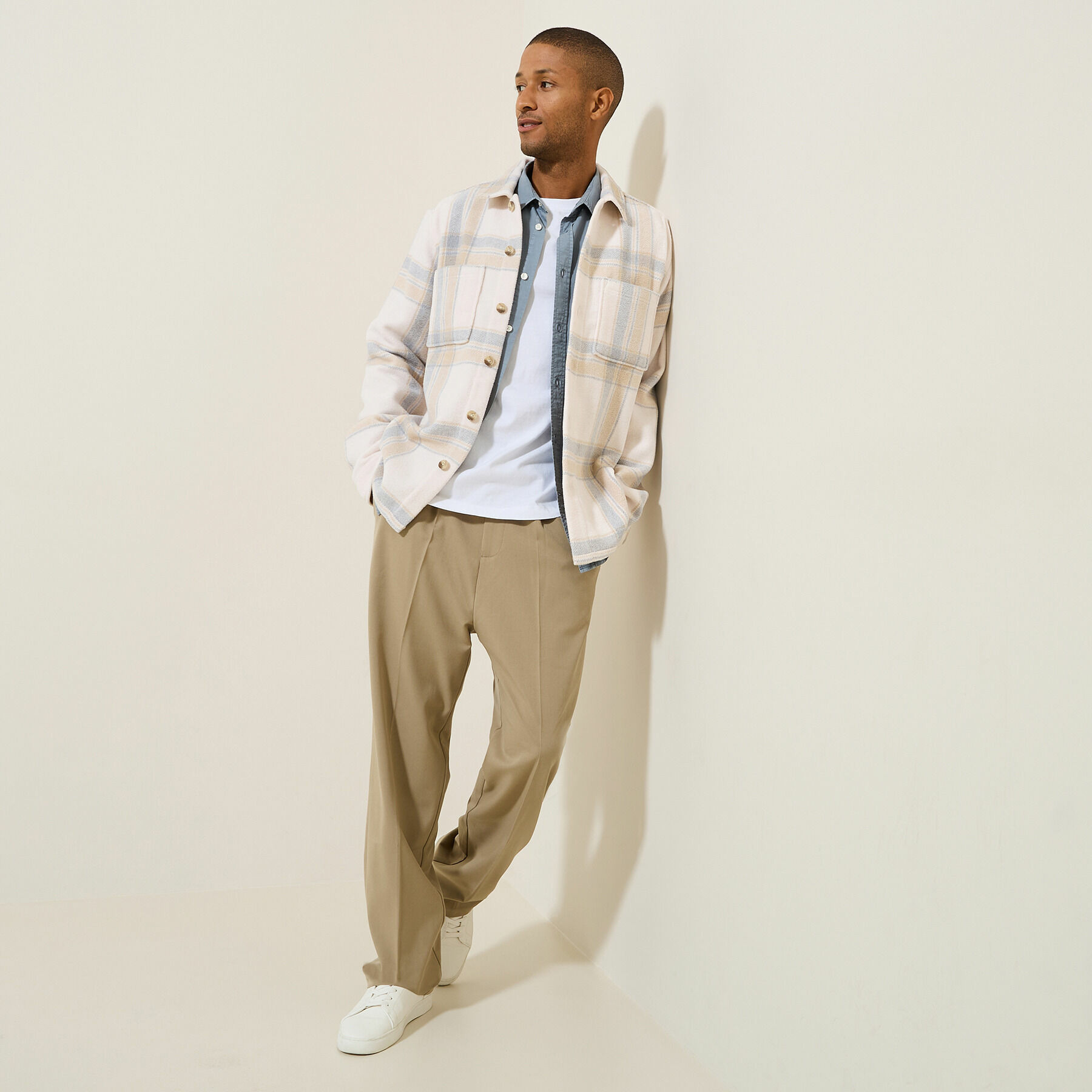 Adoptez un style à la fois décontracté et élégant avec cette surchemise à carreaux écru, un incontournable de votre garde-robe. Son motif à carreaux classique et sa coupe regular en font un choix parfait pour toutes les occasions, que ce soit pour une sortie entre amis ou une journée au bureau.