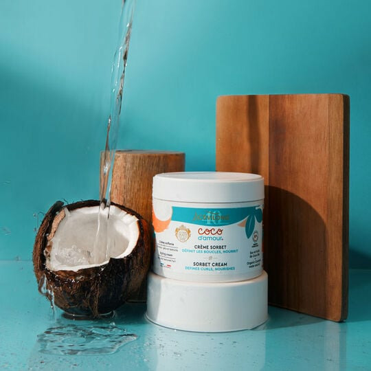 La crème sorbet Coco d'amour est facile à appliquer sur cheveux humides ou secs. Sa texture légère et non collante convient parfaitement aux cheveux texturés, offrant un soin sans rinçage qui respecte la nature du cheveu.