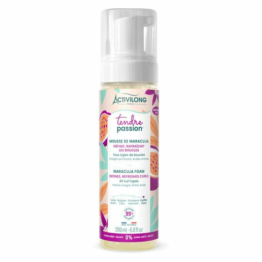 Cette mousse légère pénètre rapidement sans alourdir, apportant une définition parfaite à vos boucles tout en les nourrissant en profondeur. Sa formule enrichie en maracuja, fruit tropical reconnu pour ses vertus hydratantes, revitalise et protège vos cheveux, leur donnant souplesse et éclat. La mousse Tendre Passion est idéale pour réveiller vos boucles dès le matin ou pour un effet fraîcheur tout au long de la journée.