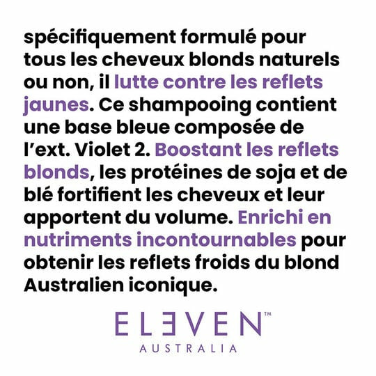 Puis-je l’associer à d’autres soins Eleven Australia ? Absolument, il s’intègre parfaitement dans une routine complète pour cheveux blonds.