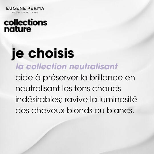 Redonnez éclat et fraîcheur à vos cheveux blonds ou blancs avec le shampooing bleu neutralisant Collections Nature d’Eugene Perma Professionnel. Une formule experte qui élimine instantanément les reflets jaunes et chauds pour une couleur pure et lumineuse.