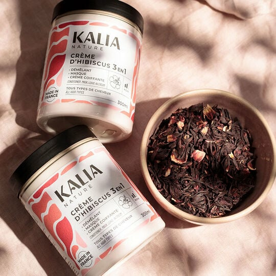 Redonnez vie à vos cheveux secs et abîmés avec la Crème d'hibiscus 3 en 1 de Kalia Nature. Un soin polyvalent qui sublime vos boucles tout en douceur.