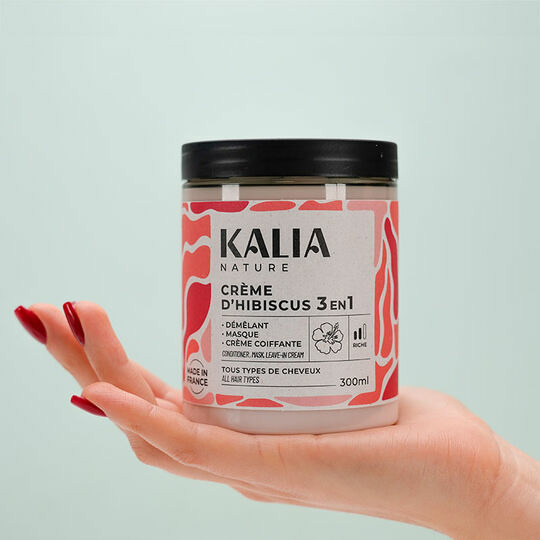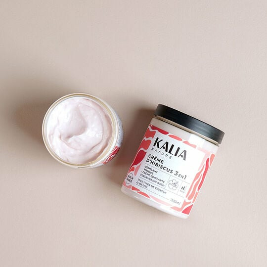 Redonnez vie à vos cheveux secs et abîmés avec la Crème d'hibiscus 3 en 1 de Kalia Nature. Un soin polyvalent qui sublime vos boucles tout en douceur.