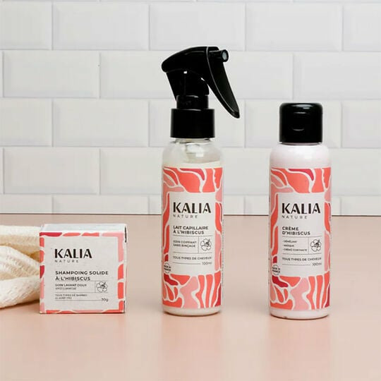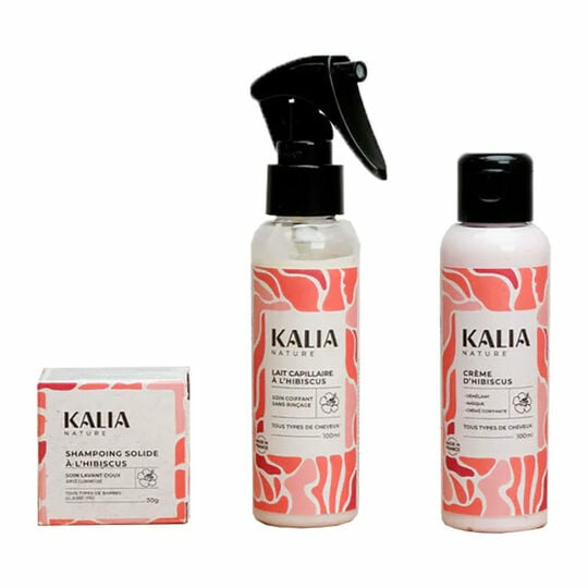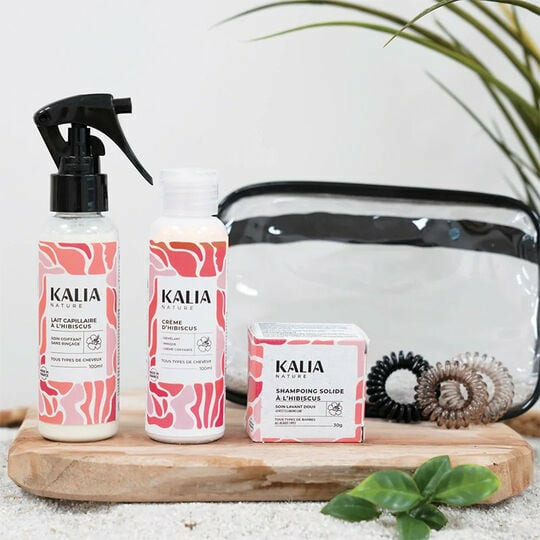 Découvrez l’essentiel du soin capillaire à l’hibiscus, parfaitement dosé pour vos cheveux texturés. La trousse découverte Kalia Nature vous accompagne partout, pour une routine efficace et naturelle.