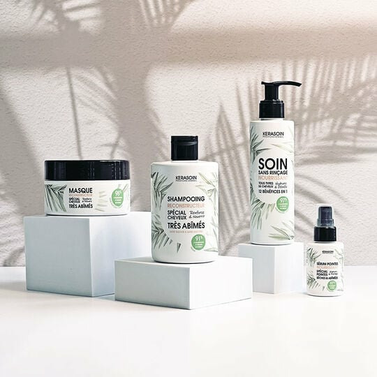 Redonnez vie à vos cheveux les plus fragilisés avec le masque reconstructeur de la Gamme Nature Kerasoin Professionnel. Une réparation intense pour des cheveux renforcés, doux et éclatants de santé.