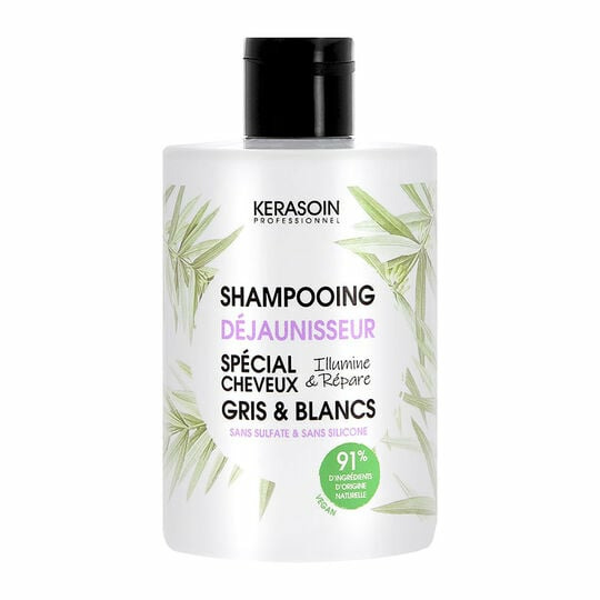 Neutralisez les reflets jaunes et révélez l’éclat naturel de vos cheveux gris et blancs. Le shampooing déjaunisseur Gamme Nature de Kerasoin Professionnel allie efficacité et douceur pour un soin respectueux.