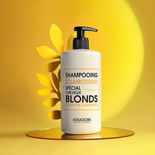 Le shampooing éclaircissant spécial cheveux blonds Kerasoin Professionnel se présente en flacon pratique, facile à utiliser. Sa composition respecte les cheveux blonds naturels, sans agents agressifs, pour un usage fréquent sans risque de dessèchement.