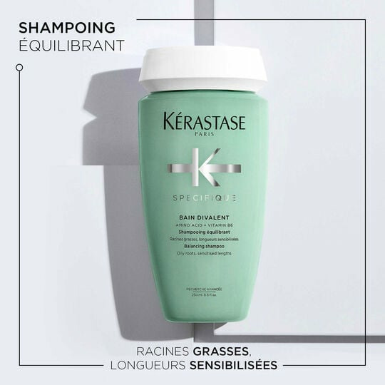 Dites adieu aux racines grasses et aux longueurs desséchées. Offrez à vos cheveux un équilibre parfait avec Bain Divalent Specifique de Kérastase.