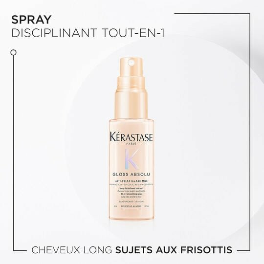 Le spray anti-frizz Gloss Absolu alourdit-il les cheveux ? Non, sa formule légère discipline les frisottis sans alourdir la chevelure.