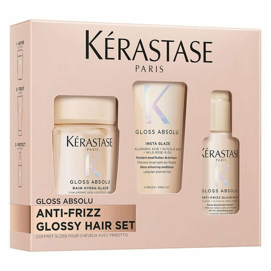 Le Coffret Découverte Gloss Absolu comprend : un shampooing 80 ml, un fondant 75 ml et un spray anti-frizz 50 ml. Tous les produits sont adaptés à un usage fréquent et conviennent aux cheveux normaux à secs en quête de brillance et de douceur.
