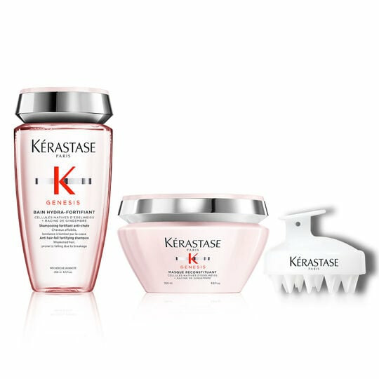 Redonnez force et éclat à vos cheveux fragilisés avec le duo Kérastase Genesis. Une routine complète qui allie soin et stimulation pour des cheveux visiblement renforcés et protégés.