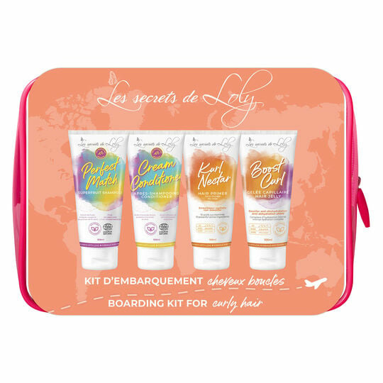 Emportez l’essentiel pour sublimer vos boucles où que vous soyez. Le kit d’embarquement cheveux bouclés Les Secrets de Loly allie praticité et efficacité pour des boucles toujours impeccables.