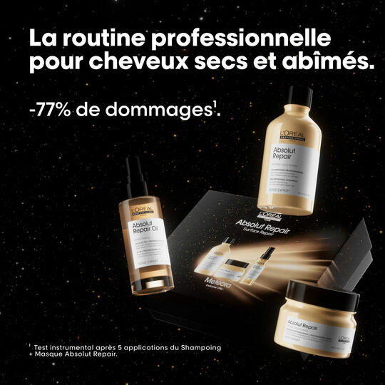 Réparez intensément vos cheveux abîmés avec le coffret Absolut Repair édition limitée Meteora. Une routine experte signée L’Oréal Professionnel Paris pour des cheveux visiblement renforcés et sublimés.