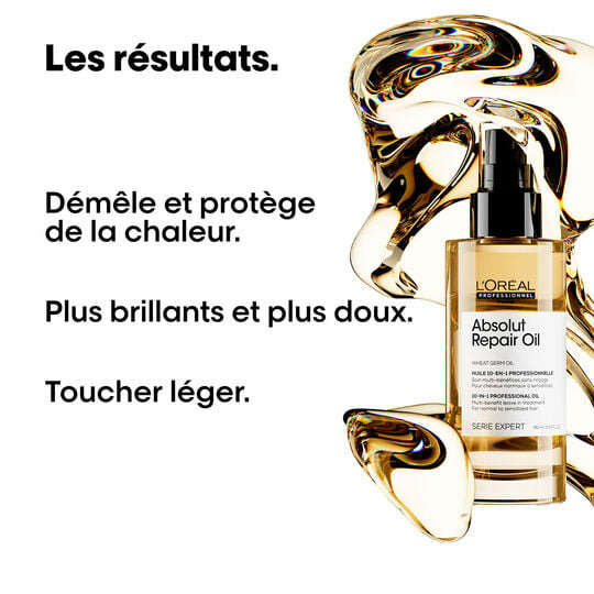 Offrez à vos cheveux normaux à sensibilisés une réparation complète avec l’huile 10 en 1 Absolut Repair. Une seule application pour révéler force, douceur et éclat durable.