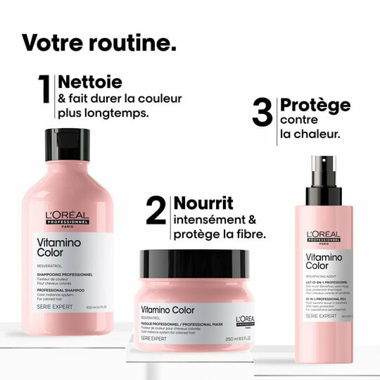 Sublimez votre couleur tout en protégeant vos cheveux avec le Lait 10 en 1 sans rinçage Vitamino Color de L’Oréal Professionnel Paris. Un soin multifonction qui transforme votre routine capillaire en un geste simple et efficace.