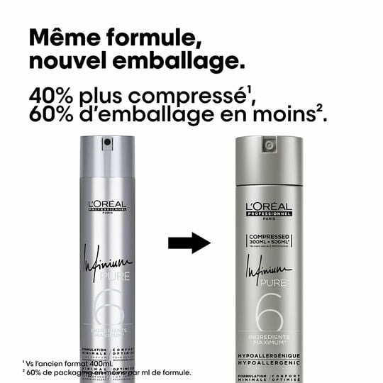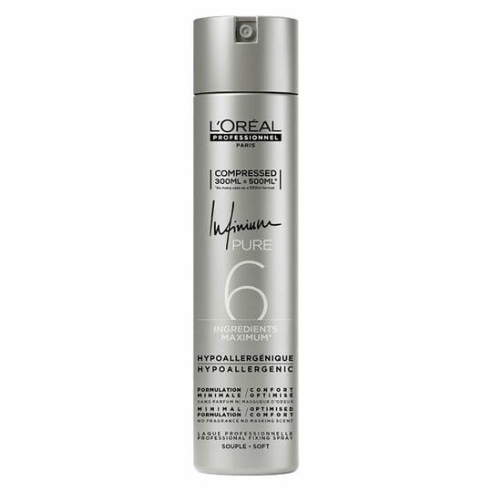 Conditionnée en spray de 300ml, la Laque Infinium Pure fixation souple s’applique facilement à distance pour une diffusion homogène. Sans parfum, elle évite toute irritation ou gêne olfactive, parfaite pour un usage quotidien ou professionnel.