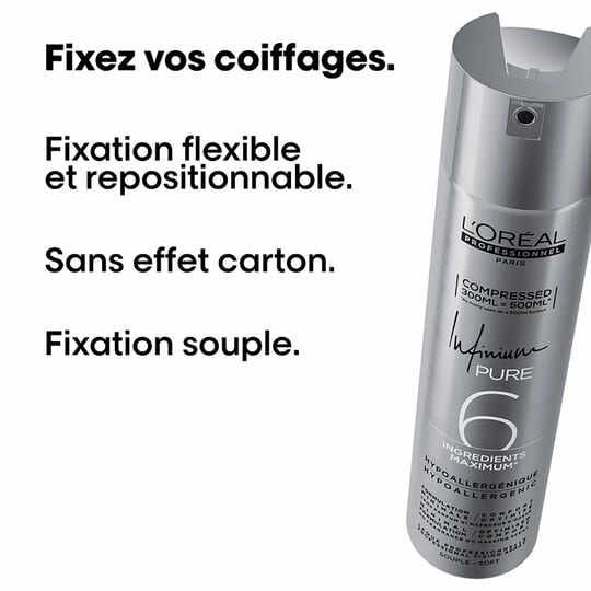 Offrez à votre coiffure une tenue légère et naturelle avec la Laque Infinium Pure fixation souple 300ml. Une brume invisible qui fixe sans alourdir, pour un style maîtrisé en toute simplicité.