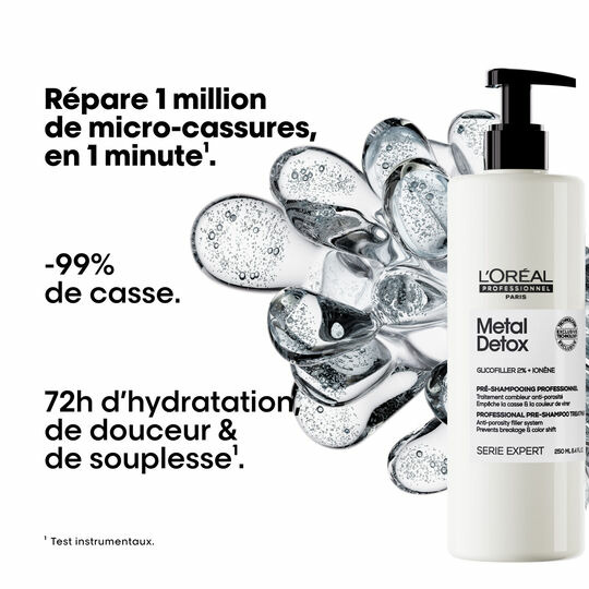 Pré-shampooing Metal Detox de L’Oréal Professionnel Paris révolutionne votre routine capillaire en protégeant vos cheveux des agressions métalliques. Offrez à vos cheveux une défense active et un soin ciblé qui prévient la casse dès la première minute.