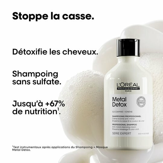 Le rituel Metal Detox abîme-t-il les cheveux ? Non, il agit en douceur tout en renforçant la fibre capillaire.
