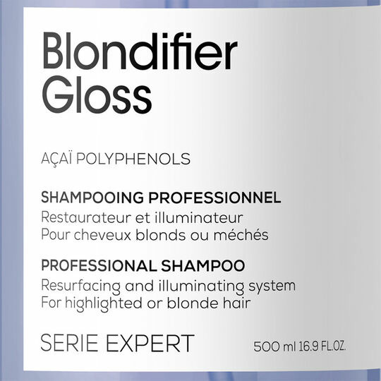 Le shampooing Illuminateur Gloss Blondifier se présente en flacon de 500 ml, facile à utiliser au quotidien. Sa formule professionnelle est conçue pour un usage fréquent, adaptée à tous les types de cheveux blonds, qu’ils soient naturels ou colorés.