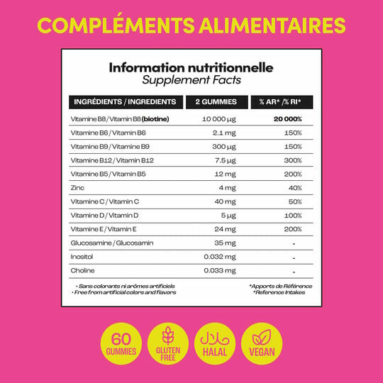 Chaque pot contient une cure complète de gummies à la cerise, riches en vitamines B, C et E, reconnues pour leurs bienfaits capillaires. Sans conservateurs artificiels, ils sont conçus pour une absorption optimale et un usage quotidien simple.