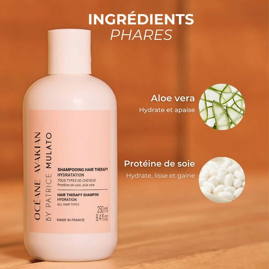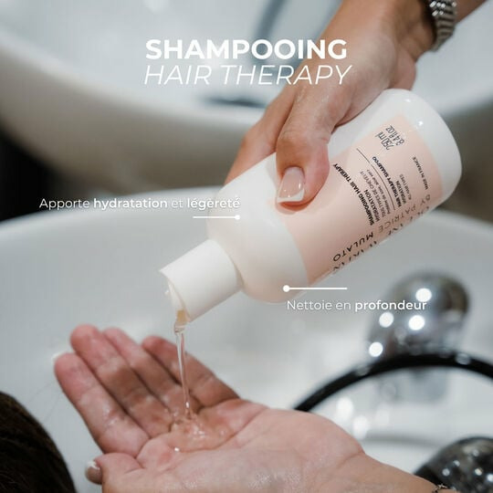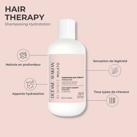 Le shampooing Hair Therapy convient-il à tous les types de cheveux ? Oui, il est formulé pour hydrater et nettoyer tous types de cheveux sans les alourdir.