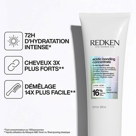 Redonnez force et éclat à vos cheveux fragilisés en seulement 5 minutes avec le masque liquide Acidic Bonding Concentrate de Redken. Une formule innovante qui répare en profondeur pour des cheveux visiblement revitalisés.