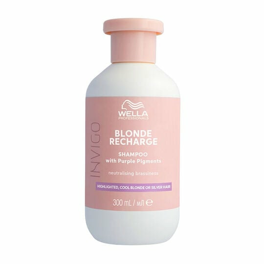Le shampooing raviveur de couleur blond froid Invigo Blonde Recharge est présenté en flacon de 300 ml. Sa formule professionnelle est spécialement développée par Wella Professionals pour un usage fréquent, adaptée aux cheveux colorés ou méchés blond froid.