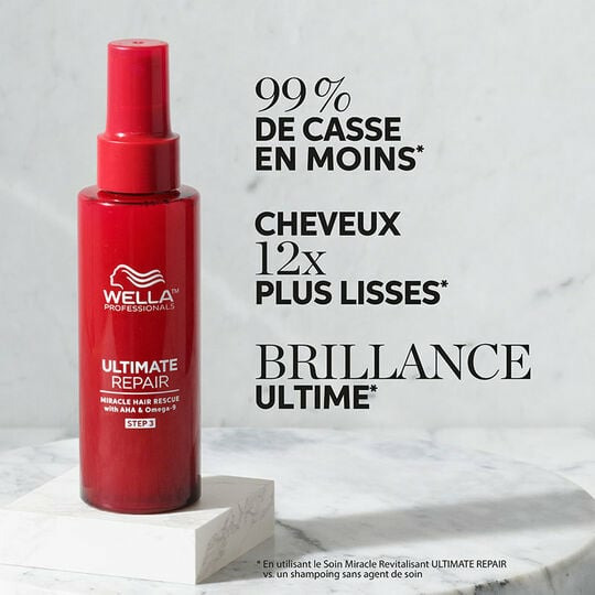 Réparez vos cheveux en un temps record avec le soin miracle revitalisant Ultimate Repair de Wella Professionals. Offrez à votre chevelure une transformation visible en seulement 90 secondes.