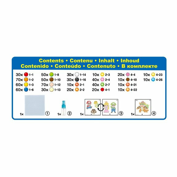 Le kit comprend un assortiment de perles colorées, un tapis de création, un vaporisateur d’eau et des modèles inspirés des personnages de Super Mario. Facile à utiliser, il convient aux enfants dès 4 ans et ne nécessite aucune source de chaleur.