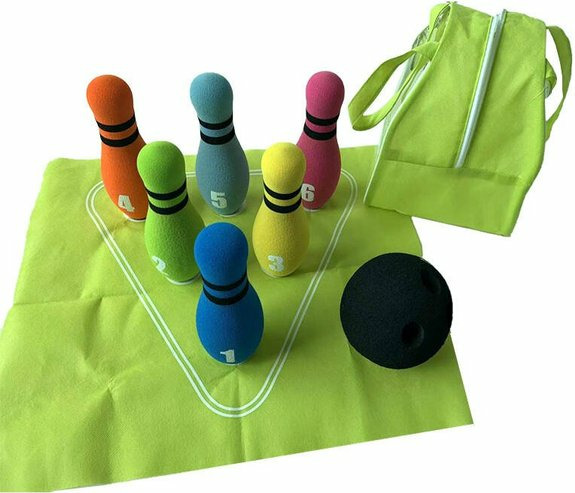 Le set comprend plusieurs quilles en mousse légère et un ballon adapté, tous conçus pour résister aux chocs et à l’humidité. Dimensions optimisées pour un transport facile et une utilisation immédiate, sans installation complexe.