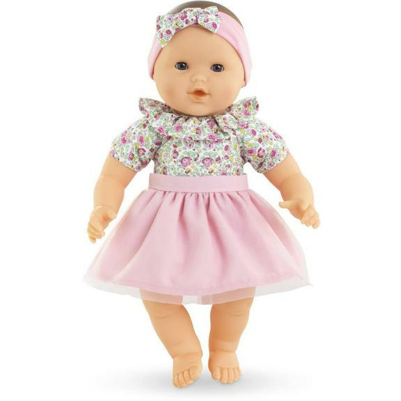 Ce grand poupon Corolle séduit par son visage doux, ses yeux bleus dormeurs et sa peau en vinyle délicatement parfumée à la vanille. Léger et souple, il se manipule facilement, idéal pour câliner et materner. Son corps en tissu fleuri, orné d’une collerette cousue et d’un tutu en tulle amovible, offre un look charmant et modulable grâce au bandeau assorti. Ce poupon invite à des heures de jeu créatif, renforcé par une collection complète de vêtements et accessoires pour varier les scénarios.