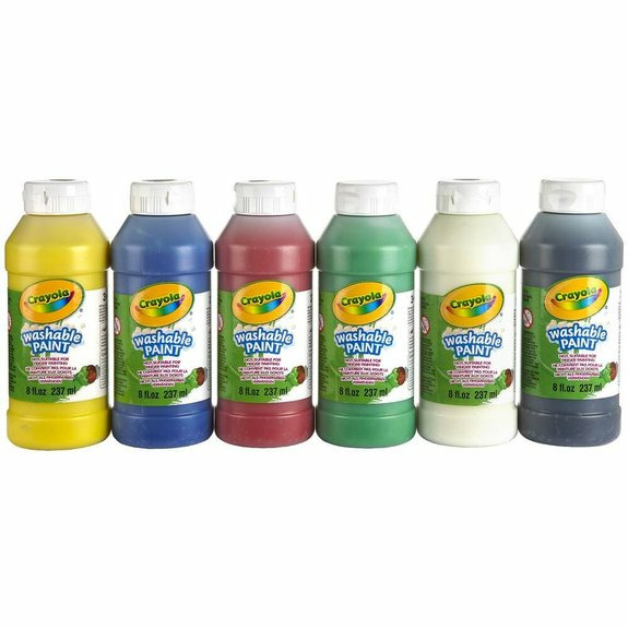 Le coffret comprend 6 bouteilles de 250 ml chacune, avec les couleurs jaune, bleu, rouge, vert, blanc et noir. Peinture lavable sur la peau et les vêtements à l’eau tiède et au savon. Marque Crayola, référence var513dc96a3fc921da84631d61e321002b.