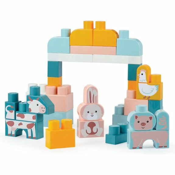 Le Baril de briques Ferme 55 pièces - BB Abrick comprend 55 briques en plastique de différentes formes et couleurs, adaptées aux enfants dès 12 mois. Le tout est présenté dans un baril pratique pour un rangement facile et un transport simple.