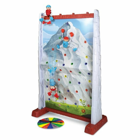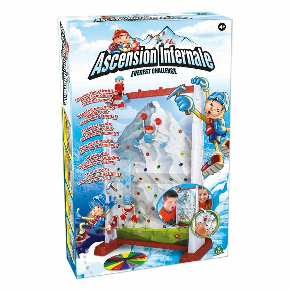 Le jeu comprend un mur d’escalade, une roue pour faire monter les personnages, quatre figurines et un plateau de jeu. Il est conçu pour plusieurs joueurs, parfait pour des parties en famille ou entre amis.