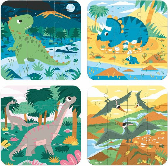 Plongez votre enfant dans l’univers fascinant des dinosaures avec ce coffret de 4 puzzles captivants. Chaque pièce assemble un monde préhistorique riche en couleurs et en détails, stimulant l’imagination et la concentration.