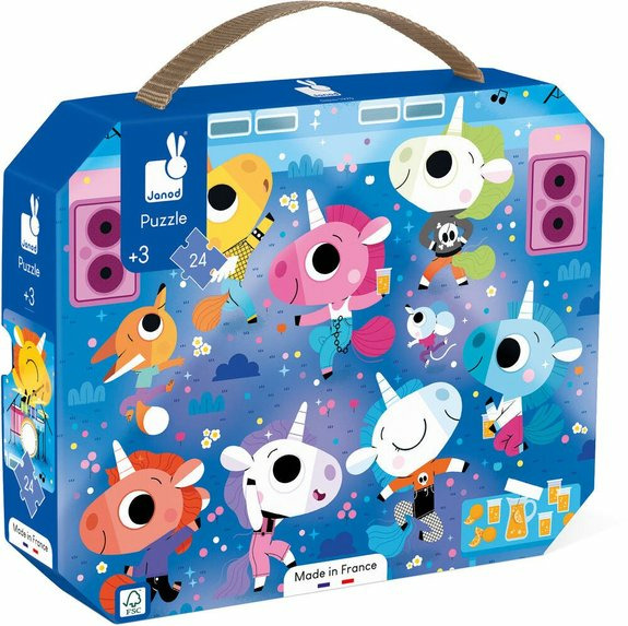 Marque : Janod. Nombre de pièces : 24. Thème : licornes et musique. Inclus : poster d’aide à l’assemblage, valisette de transport. Fabrication française, matériaux durables, encres végétales.