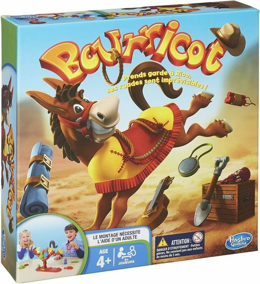Le jeu Bourricot d’Hasbro revient dans une version revisitée où l’âne Rico refuse toujours de porter ses bagages sans broncher. Chaque joueur doit empiler délicatement des objets sur son dos, tout en évitant ses ruades soudaines qui peuvent tout faire tomber. Ce jeu combine adresse, stratégie et suspense, pour des parties intenses et amusantes en famille ou entre amis. Son montage simplifié et ses trois niveaux de difficulté programmables en font un jeu accessible et évolutif, adapté à tous les âges.