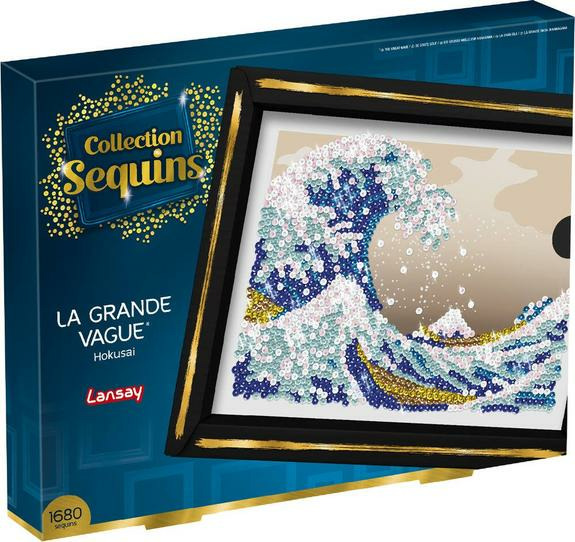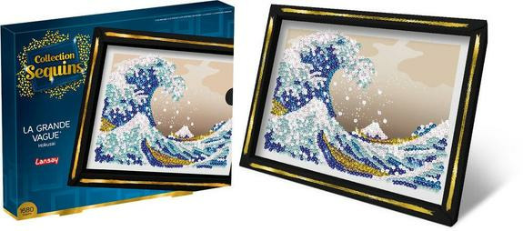 Plongez dans l’univers artistique de Hokusai en créant un tableau scintillant unique. La Grande Vague prend vie sous vos doigts grâce à une explosion de sequins colorés.
