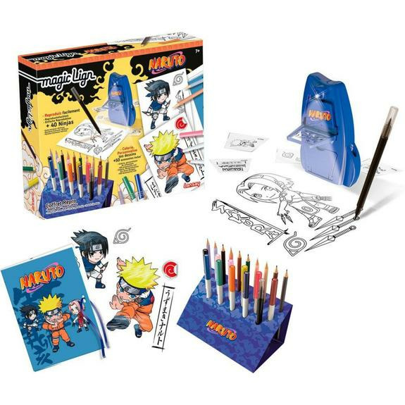 Le coffret Magic Lign Naruto comprend plus de 50 accessoires, dont un projecteur, des feuilles à dessin, des crayons de couleur, des pochoirs et plus de 100 illustrations des personnages. Dimensions compactes pour un rangement facile et une utilisation pratique.
