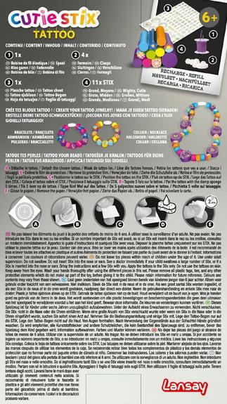 La recharge TATTOO comprend un ensemble de lettres à transférer sur les Stix. Compatible uniquement avec les produits de la gamme Lansay Stix, elle est conçue pour un usage simple et sécurisé dès 6 ans.