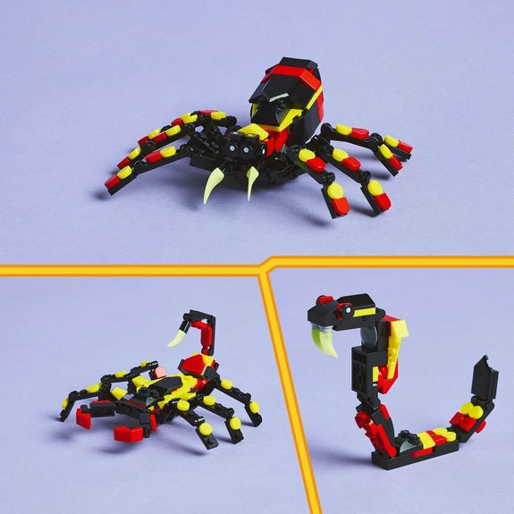 Le set comprend 153 pièces et des instructions claires pour construire trois modèles distincts : une araignée, un scorpion et un serpent. Il fait partie de la gamme LEGO Creator, reconnue pour ses constructions modulables et détaillées.