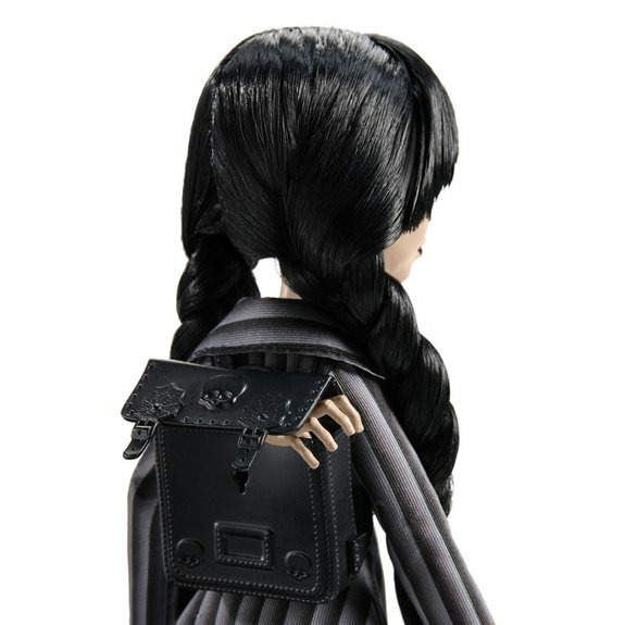 Poupée mannequin articulée à l’effigie de Mercredi, vêtue de sa tenue iconique. Livrée avec un socle pour un maintien stable et plusieurs accessoires pour enrichir le jeu. Fabricant : Mattel.
