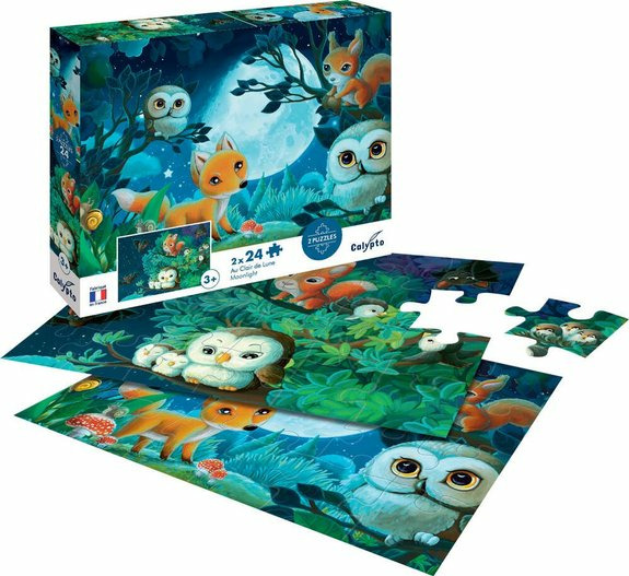 Stimulez la curiosité et la concentration de votre enfant avec le coffret puzzle 2x24 pièces Au clair de lune. Un jeu évolutif qui accompagne ses premières réussites tout en douceur.